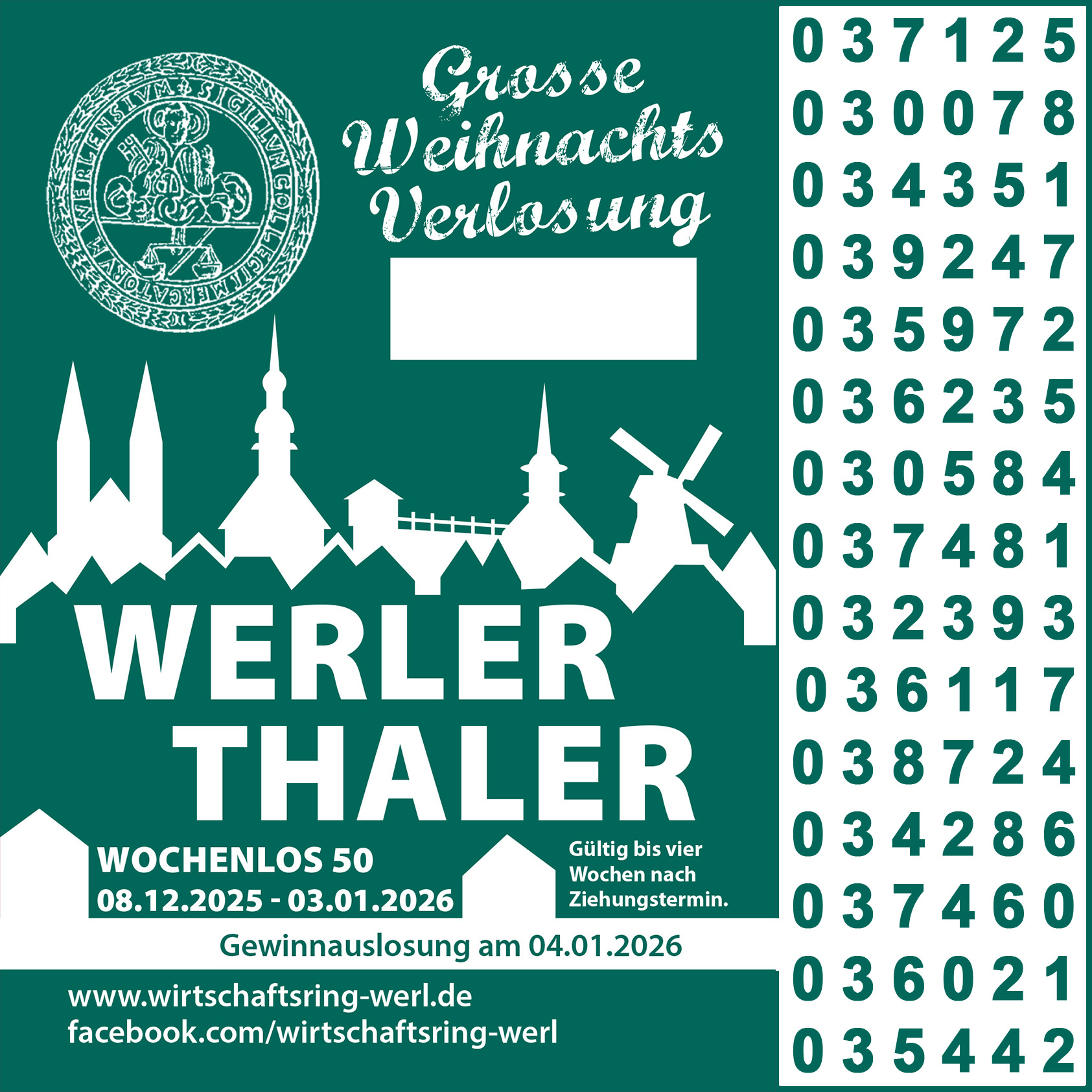Hier die Gewinner der ersten Ziehung der Werler Thaler Lose 2025/2026 vom 4. Januar 2026: